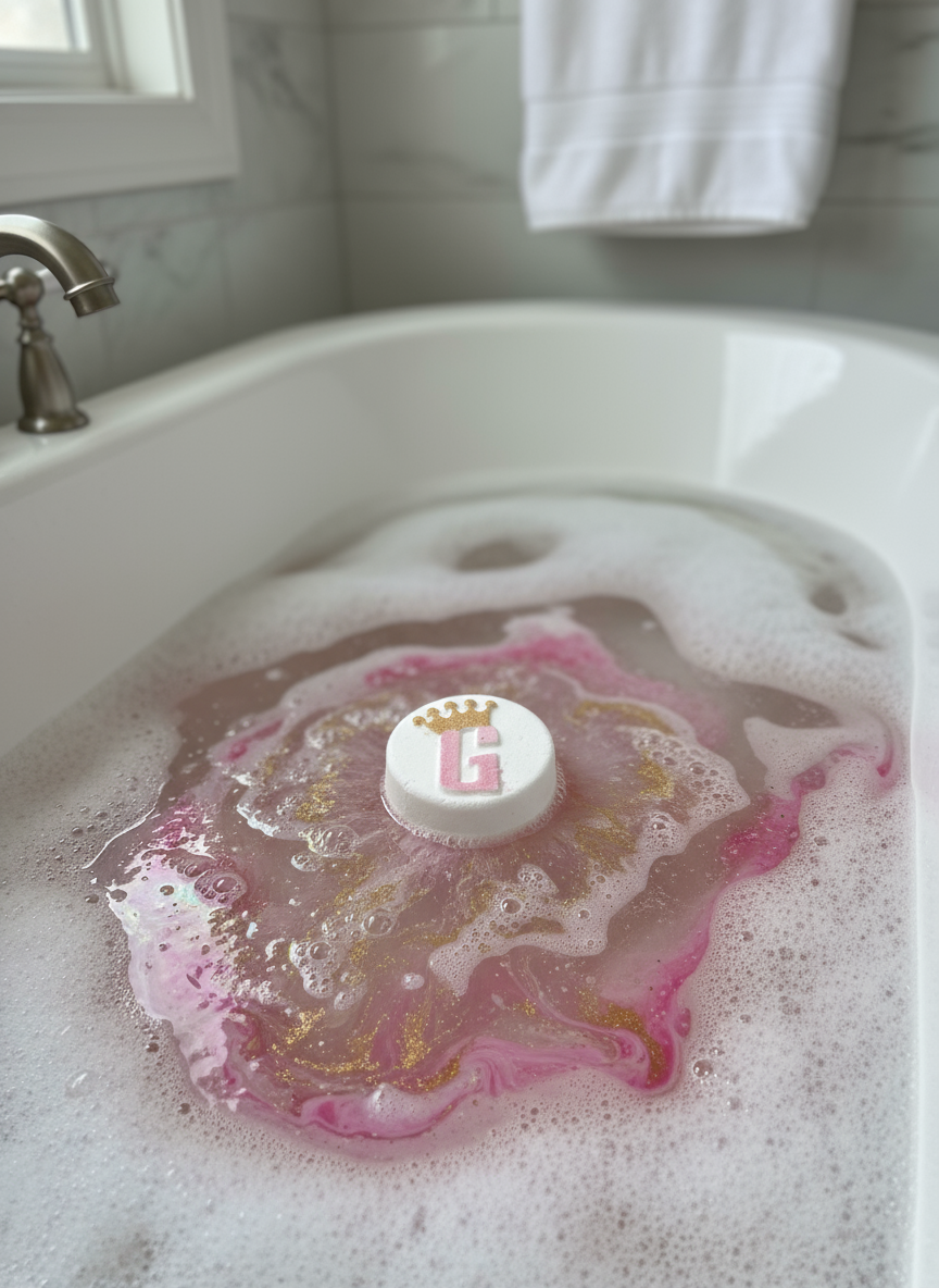 Step into a world of shimmer, sparkle, and sweetness with our G Wicked Puck! Inspired by the iconic Glinda from the movie Wicked, this bath bomb captures her bubbly charm, glittery glam, and goodness galore. With a soft swirl of pastel pinks, shimmering gold, and a sweet, uplifting scent, this puck turns your bath into a magical escape full of fizz, fun, and fairy tale vibes.